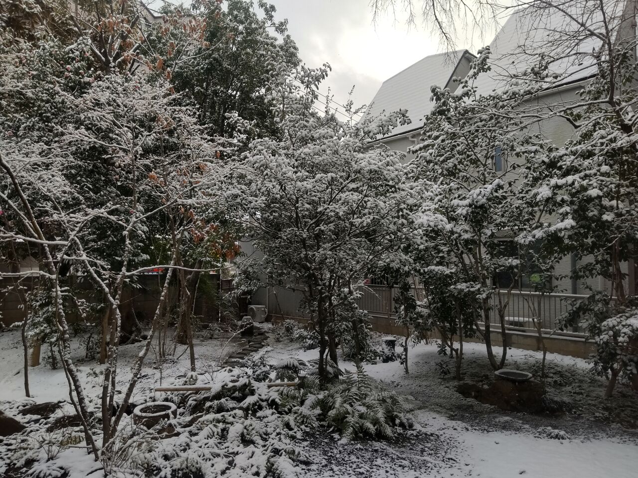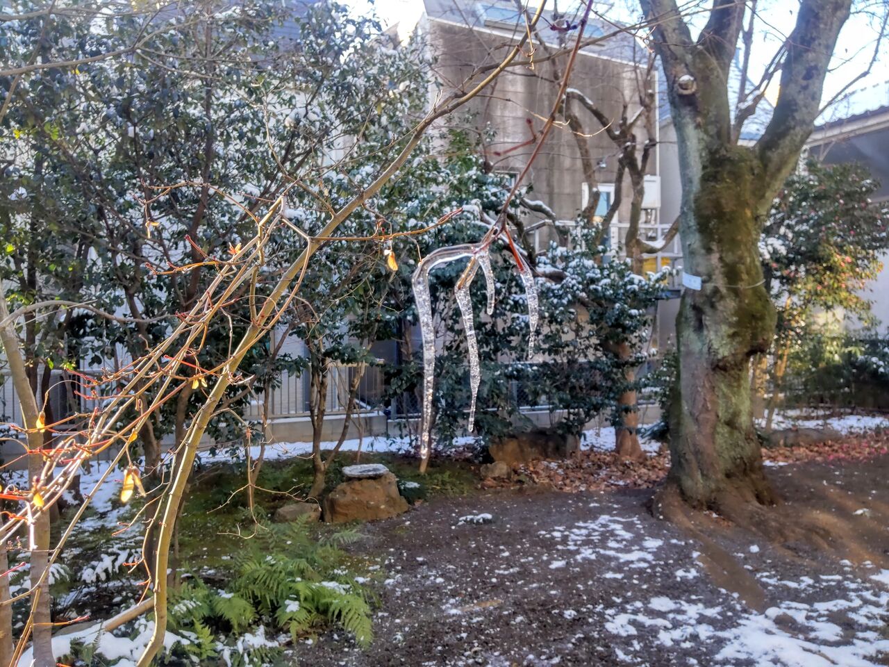 先日の雪の日に、家人から指令を受けて何枚か庭の写真を撮りました。せっかく撮ったのですから一枚くらい、ここに載せておきます。